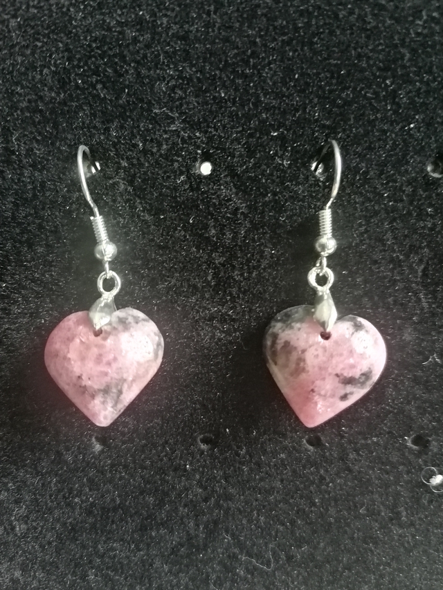 BOUCLES D'OREILLES EN COEUR DE RHODONITE